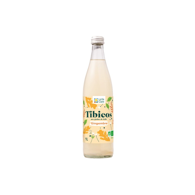 Eau 89%, fruits* 4,4% (citron*, figue*), ferments (grains de kéfir 3,2%), sucre de canne roux* 2,7% (disparait pendant la fermentation), jus de gingembre* 0,7%, jus de baie de godji*.