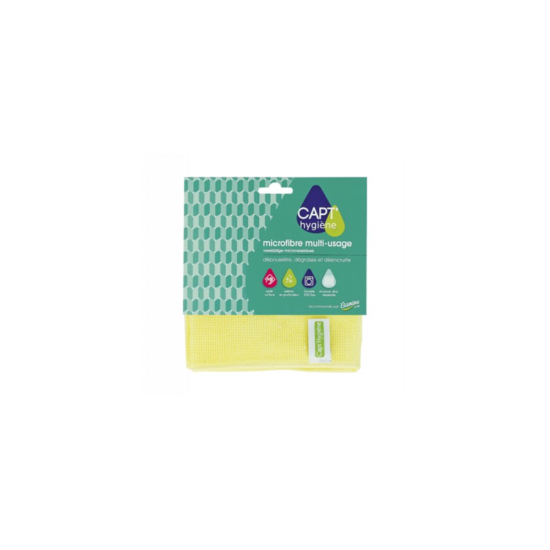 La Microfibre Multi-Usages Capt’Hygiène nettoie et dégraisse en profondeur.
