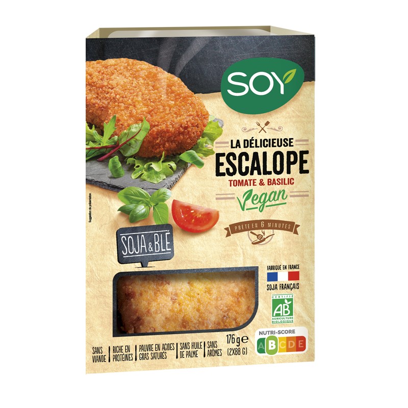 Laissez-vous surprendre par cette délicieuse Escalope végétale, croustillante et fondante, au bon goût de tomate et relevée d’une pointe de basilic. Riche en protéines grâce à l’association du soja et du blé et pauvre en acides gras saturés, cette délicieuse spécialité 100% vegan est idéale pour remplacer la viande de temps en temps.