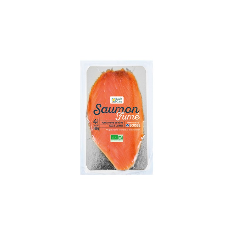 SAUMON ATLANTIQUE* (Salmo Salar) élevé en Ecosse, sel, fumé au bois de hêtre.